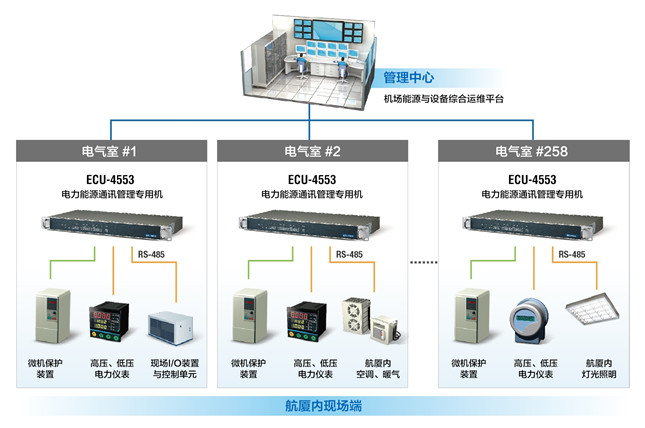 系統(tǒng)需求以滿足一億人次年旅客吞吐量為目標(biāo)的北京新機(jī)場即將于2019年下半年竣工營運(yùn)。該機(jī)場既被定位為大型國際航空樞紐,更致力于成為中國綠色機(jī)場的典范。因此設(shè)計(jì)之初就把節(jié)能環(huán)保理念納入規(guī)劃,并已委由系統(tǒng)整合商為整個(gè)機(jī)場的26個(gè)變電室、60臺(tái)變壓器、9個(gè)備用電源發(fā)電機(jī)房及258個(gè)配電室建置一套無人值守、集中管理的能源與設(shè)備綜合運(yùn)維平臺(tái),藉此全面監(jiān)控航廈內(nèi)的空調(diào)、照明、供水、供暖、電梯等能耗設(shè)施及相關(guān)儀表。而為了能將機(jī)場內(nèi)的能耗做通盤審計(jì)以分析出可節(jié)省能源的潛在環(huán)節(jié),再通過聯(lián)動(dòng)機(jī)制降低能耗,系統(tǒng)整合廠商需要在每間電氣室內(nèi)配置計(jì)算機(jī)作為數(shù)據(jù)網(wǎng)關(guān)收集大量數(shù)據(jù),并且將不同通訊協(xié)議數(shù)據(jù)轉(zhuǎn)換為符合IEC 61850-9的格式后,才可上傳至能源與設(shè)備綜合運(yùn)維平臺(tái)。而該系統(tǒng)整合廠商想要采購的計(jì)算機(jī)必須滿足以下條件: ·高性能、高穩(wěn)定性的工業(yè)級(jí)計(jì)算機(jī)以提供足夠的運(yùn)算能力處理大量資料; ·符合IEC 61850-3標(biāo)準(zhǔn)的訊號(hào)隔離與抗干擾硬件設(shè)計(jì); ·采用RT-Linux實(shí)時(shí)操作系統(tǒng)以達(dá)到實(shí)時(shí)控制; ·較寬的工作溫度范圍與較佳的抗干擾能力以便在嚴(yán)苛環(huán)境中穩(wěn)定運(yùn)作; ·具備多個(gè)RS-485/232串行端口與網(wǎng)絡(luò)端口以連接眾多底層設(shè)備與傳送數(shù)據(jù)。 北京新機(jī)場能耗(圖片源自網(wǎng)絡(luò)) 系統(tǒng)概述同時(shí),系統(tǒng)也可經(jīng)由ECU-4553對底層設(shè)備下達(dá)控制指令,譬如根據(jù)航班信息來事前了解某些區(qū)域旅客流量的多寡,于人流較少時(shí)關(guān)閉該區(qū)的空調(diào);又或者是當(dāng)接收到變壓器的異常訊號(hào)而出現(xiàn)臨時(shí)停電狀況時(shí),亦能由監(jiān)控中心遠(yuǎn)程啟動(dòng)備用電源發(fā)電機(jī)。 內(nèi)建TI Cortex A8處理器的ECU-4553是一款符合IEC 61850電力規(guī)范的高性能工業(yè)等級(jí)通訊管理專用機(jī),搭配具有實(shí)時(shí)特色的RT-Linux操作系統(tǒng),可讓智能化能耗監(jiān)控系統(tǒng)的整體執(zhí)行效率更精準(zhǔn)。支持寬溫(-40~70°C)則可排除因極度低溫或高溫導(dǎo)致計(jì)算機(jī)無法啟動(dòng)或死機(jī)的問題。而在電磁兼容性(EMC)方面,ECU-4553符合IEC 61850-3硬件標(biāo)準(zhǔn)規(guī)范,既具備足夠抵抗外界電磁干擾的能力,同時(shí)也不會(huì)對其它設(shè)備或裝置的運(yùn)作造成影響,因此就算被安裝在有眾多電氣與電子設(shè)備的環(huán)境內(nèi),它依然能夠穩(wěn)定運(yùn)行。 至于承上啟下的部分,ECU-4553提供4個(gè)網(wǎng)口、16個(gè)RS-232/485串口,可輕松連接使用不同協(xié)議(例如IEC-60870-5-104、IEC-60870-5-101、Modbus/RTU、Modbus/TCP)的各種設(shè)備,既滿足項(xiàng)目目前的聯(lián)網(wǎng)需求,又為系統(tǒng)預(yù)留了日后擴(kuò)充的空間。 專案導(dǎo)入系統(tǒng)架構(gòu)圖![]() 結(jié)論以上案例來自研華官網(wǎng) |