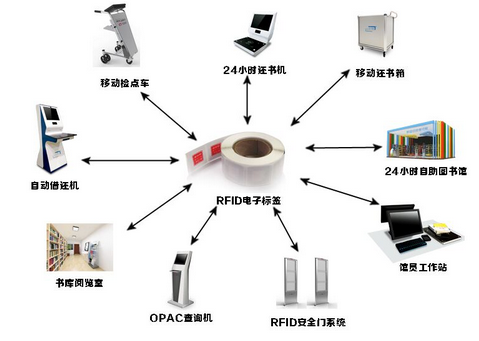![]() 原理: 1. 將圖書館圖書信息錄入RFID標簽,貼在每本圖書上,并將圖書信息存放位置等信息傳至后臺管理數(shù)據(jù)庫。采用RFID標簽使用壽命比普通條碼和磁條更長。